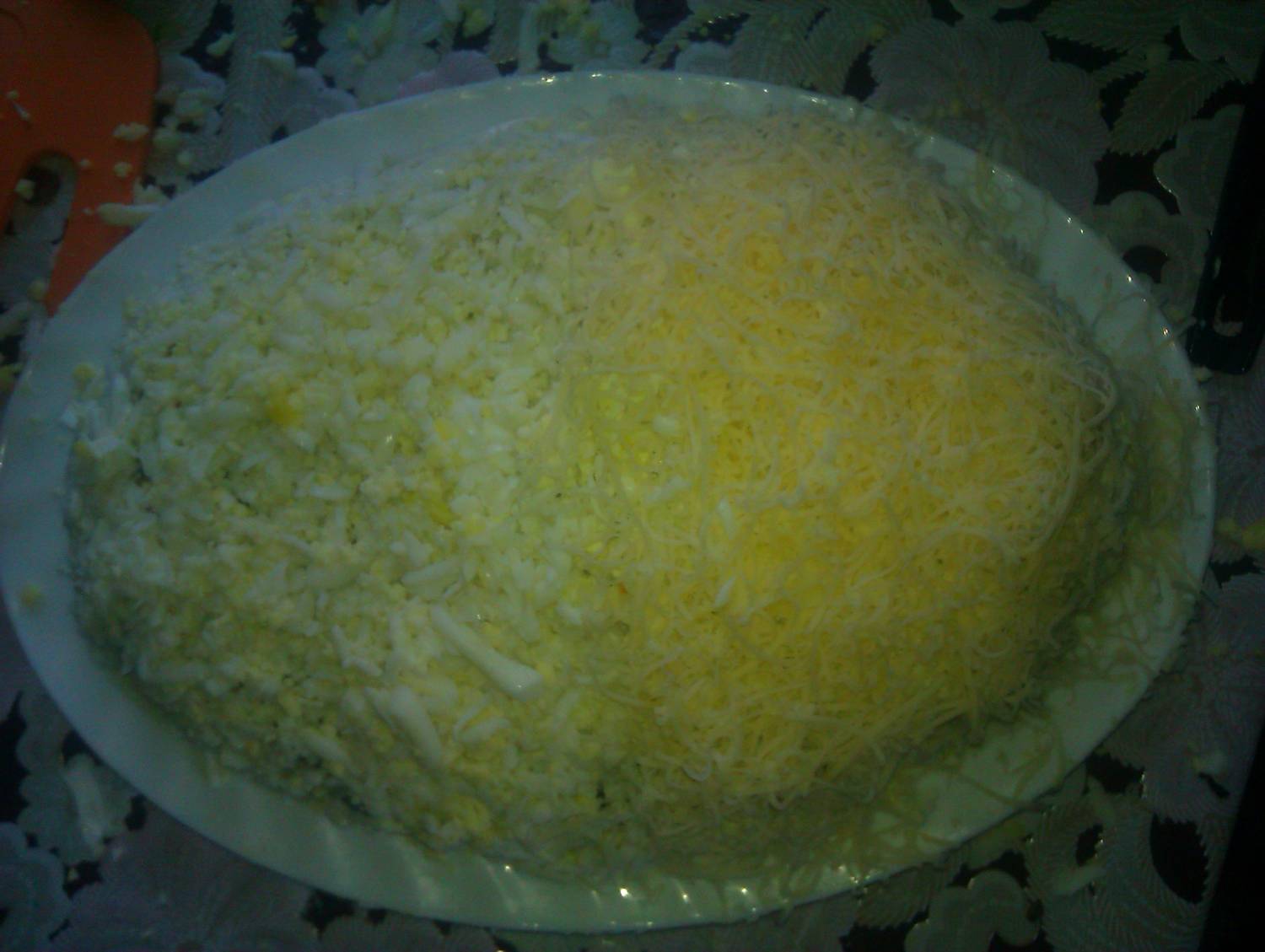 Яйца трем на крупной терке - это 4 слой.